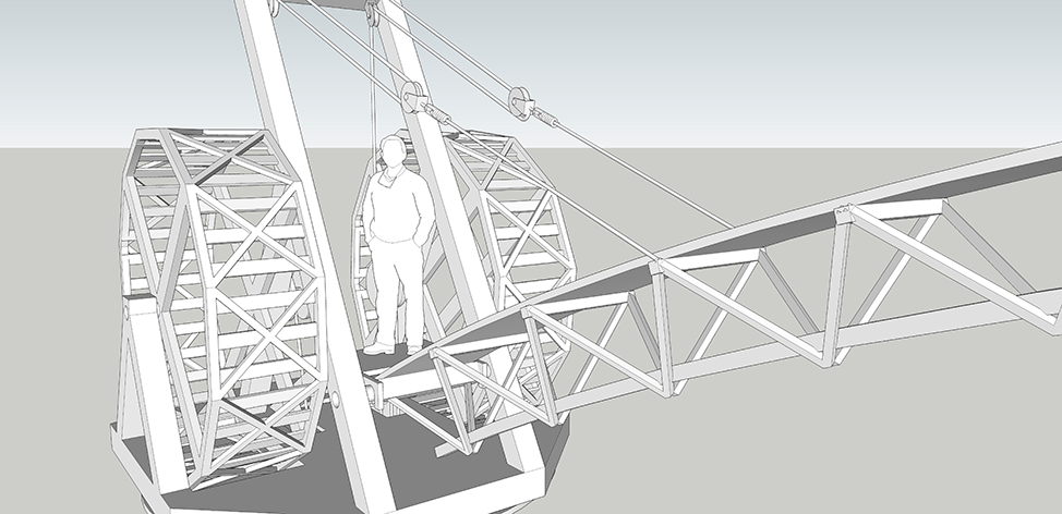 Model, scale 1: 5, tree, rope.