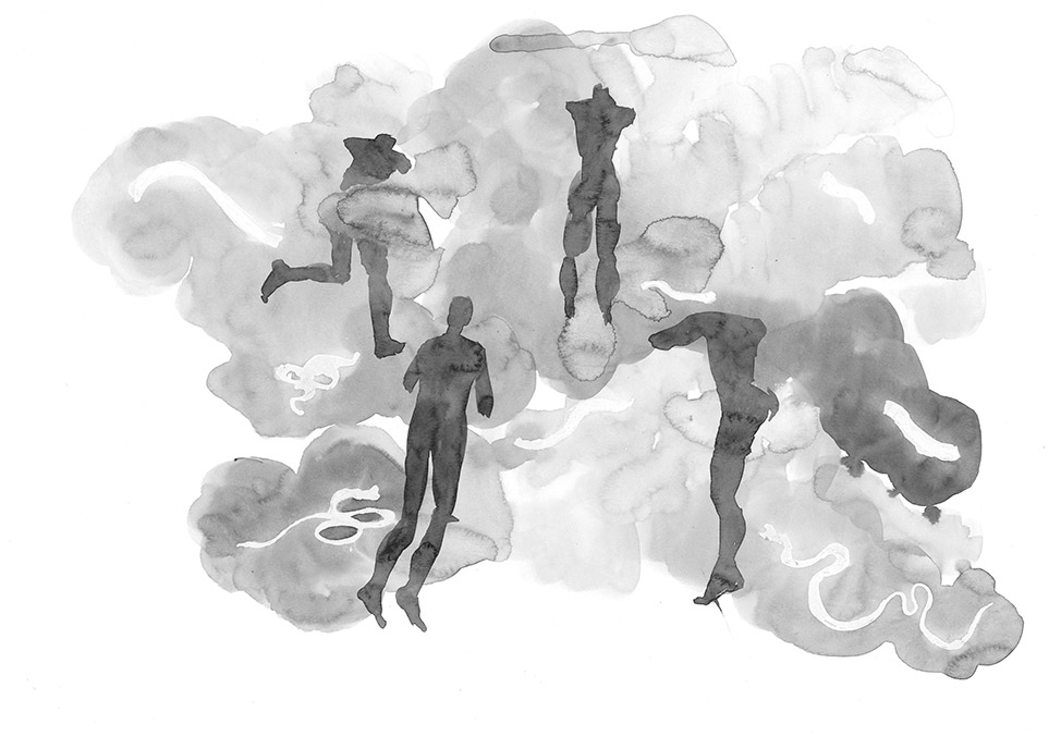 Swimming people, composition #1, watercolor, paper, 30х40 cm.