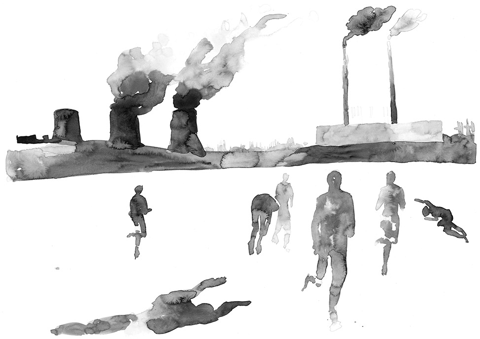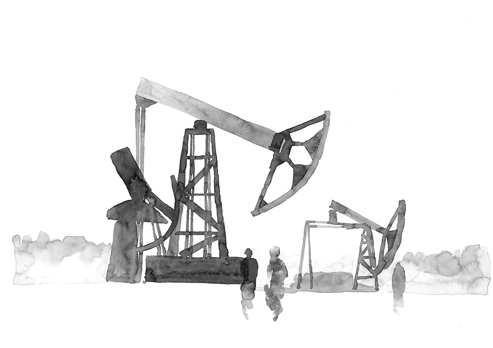 Russia. Oil pumps, watercolor, paper, 30×40 cm.
