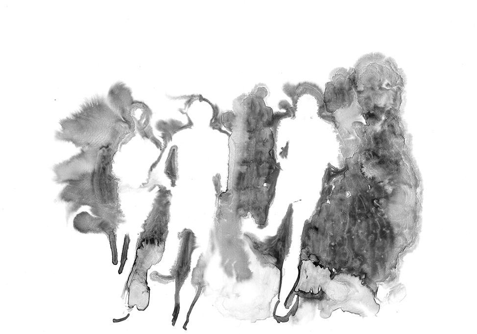 Running people, composition #1, watercolor, paper, 30х40 cm.